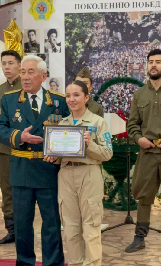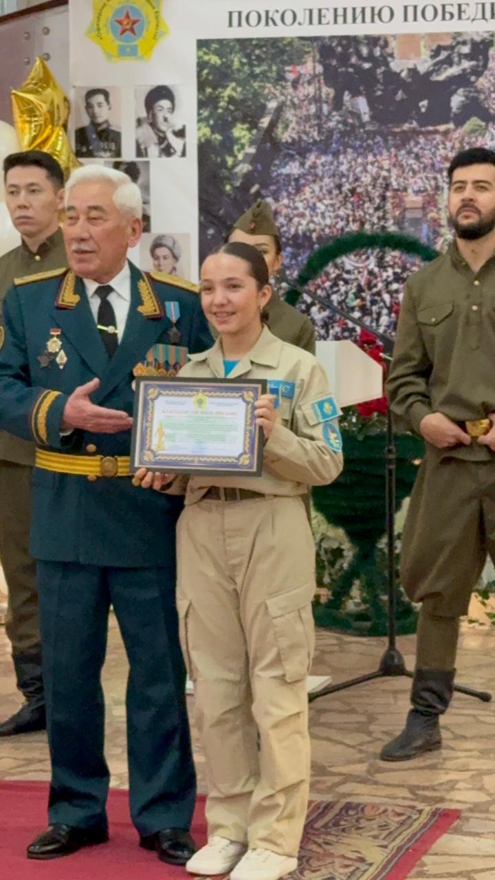 Ученица 7 «А» класса школы-гимназии №44 Улуханова Алсу приняла участие и выступила на патриотической акции «СЛАВА И ПОЧЁТ ПОКОЛЕНИЮ ПОБЕДИТЕЛЕЙ», посвящённой 80-летию Великой Победы и Дню Независимости Республики Казахстан. Мероприятие прошло в Доме Армии города Алматы и объединило ветеранов Великой Отечественной войны, тружеников тыла, военнослужащих, представителей общественных организаций, школьников и студенческую молодёжь. Выступление нашей ученицы стало проявлением уважения к подвигу поколения победителей, любви к Родине и преемственности патриотических ценностей. Гордимся нашими учениками и благодарим за активную гражданскую позицию!