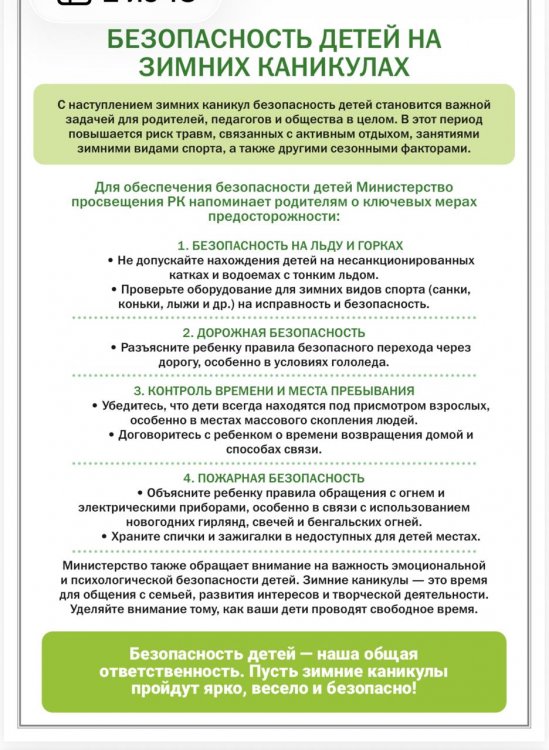Қауіпсіз қысқы демалыс. Безопасные зимние каникулы